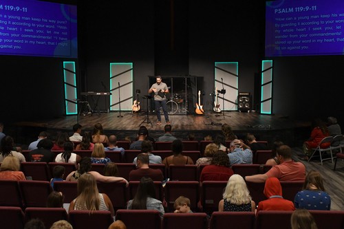 Every week we open the service with singing and prayer. Following the congregational singing, we spend time in God's word hearing scripture exposited and learning together. We close with prayer, a song, and announcements. Our goal on Sunday mornings is to help people focus on Jesus through biblically grounded, heartfelt worship that is accessible for all ages.